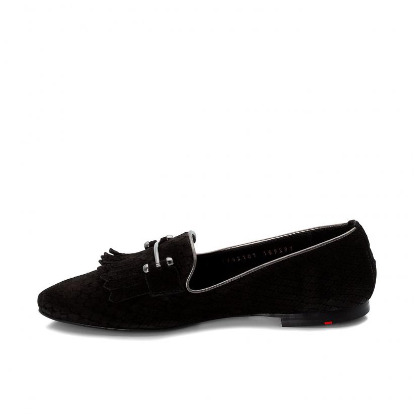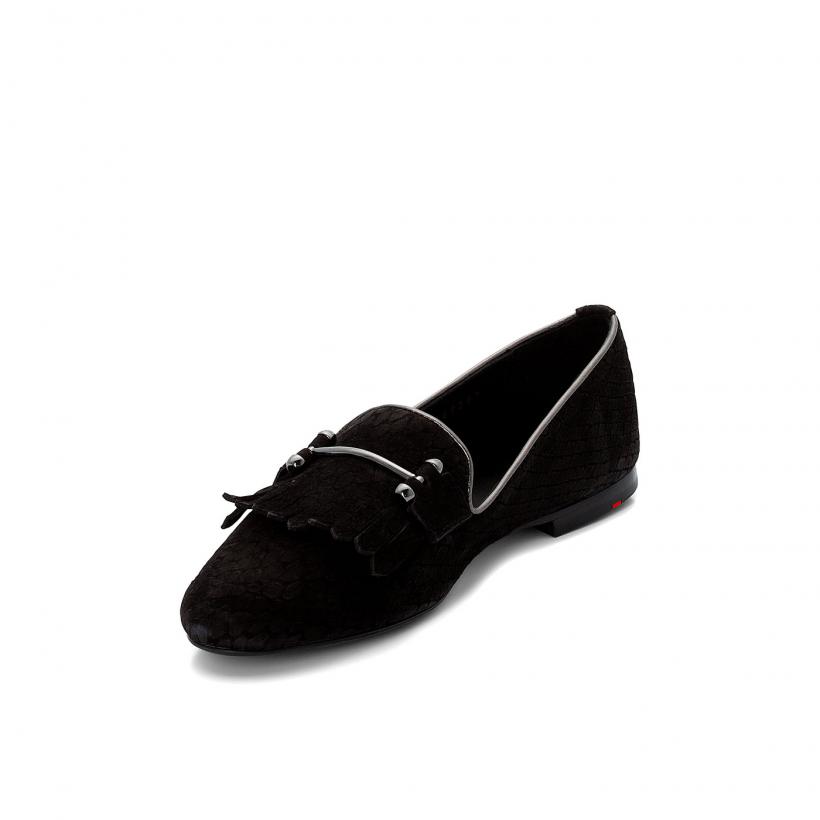 Geprägtes Ziegenvelours, reiche Haferlaschen und Metalldetails sind das Geheimnis dieses feinen Trotteurs. Perfekt lässt sich der Farbton zu den aktuellen Farbthemen Ihrer Sommermode kombinieren. Durch die Lederfütterung eignet sich der Schuh perfekt zum barfuß tragen.